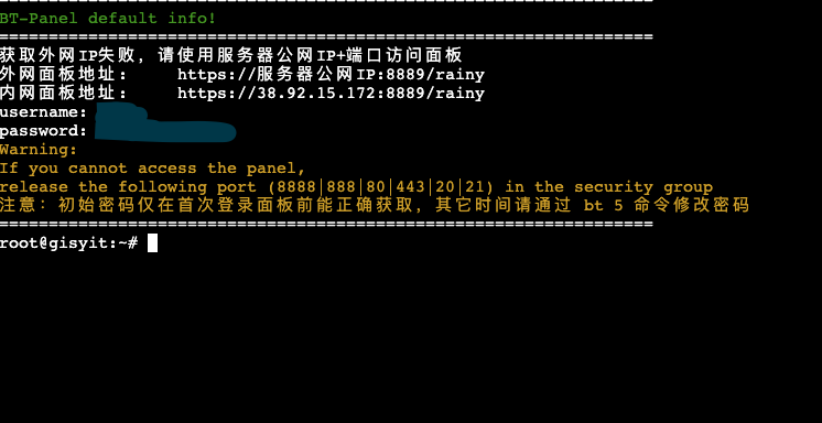 六、等待安装完成并记录面板访问信息